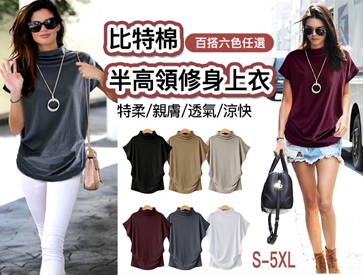 【限時瘋殺】100%比特棉,半高領修T恤,超柔軟舒適,透氣又清涼!腰間堆疊層次感,寬鬆顯瘦!不挑身材,尺寸:s-5xl!瘋殺【$998買一送一】【+498再得兩件】