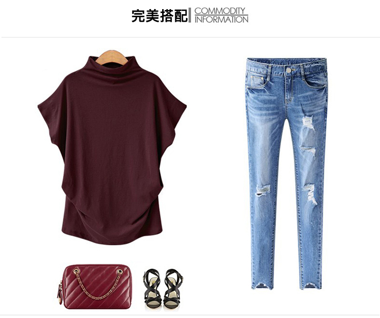 【爆款瘋殺】半高領寬鬆時尚短袖